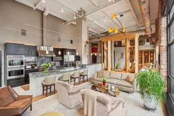 A Rarely Available West Loop Penthouse with Ultimate Cool Factor. This architecturally striking 3BD / 3BA penthouse duplex is perched atop one of the West Loop's most coveted boutique elevator buildings. A true standout in the neighborhood, this corner unit stuns from the moment you walk in with soaring 22-foot ceilings, exposed brick, rich custom wood finishes, and dramatic natural light throughout. The expansive, open-concept floor plan is thoughtfully designed for both comfortable daily living and eye-catching entertaining. The chef's kitchen is equipped with top-of-the-line stainless steel appliances, sleek cabinetry, and built-in wine storage-offering form, function, and flow. All three bathrooms are spa-caliber, featuring distinctive tilework and high-end finishes that add warmth and texture. The home offers excellent indoor-outdoor connection with two private balconies and access to a generously sized rooftop deck reserved exclusively for the penthouse tier-perfect for relaxing, grilling, or hosting under the skyline. Additional highlights include two garage parking spaces, a large private storage cage, and an unbeatable location just steps from Randolph Street's restaurant row, Fulton Market, Skinner West Elementary, public transit, and the expressway.