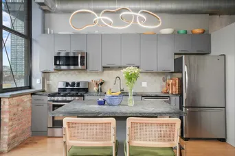 Welcome to Washington Blvd Lofts, where historic character meets modern luxury in the heart of the West Loop. This sun-filled 2-bedroom, 2-bath loft-style condo was fully reimagined in 2023 with custom details at every turn. Soaring 12-foot ceilings, exposed brick, and oversized 8-foot windows create a dramatic, light-filled backdrop, while the kitchen features refinished cabinetry, new hardware, a sleek backsplash, and designer lighting over the island. The open-concept living and dining area is anchored by a striking custom fireplace with integrated uplighting, concealed storage, and a built-in electric drop for seamless TV mounting. The primary suite is a tranquil retreat with a bespoke accent wall, plush carpeting, custom closet build-out, elegant sconce lighting, and a handcrafted sliding door for privacy, while the second bedroom offers equal versatility with a custom wardrobe, and sophisticated millwork. Both bathrooms are beautifully appointed with modern tilework and seamless glass showers. Additional highlights include a dramatic foyer with perimeter accent lighting, statement wallpaper, a custom millwork feature wall flowing into the main living space and USB/USB-C enabled outlets. Step outside to an expansive west-facing balcony with breathtaking sunset views. Converted to condos in 2000, this professionally managed building offers superior construction with 15 inches of concrete between floors. The home includes a spacious storage cage (#507) and a secure deeded outdoor parking space (#21), included in the listing price. Ideally located, this home is steps from Mary Bartelme Park, Mariano's, Whole Foods, Target, and local markets, with easy access to Restaurant Row, Fulton Market, Madison Street, I-90/94, I-290, Metra, and CTA, offering the ultimate West Loop lifestyle.