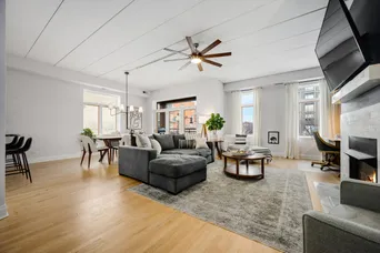 Perfectly positioned in a boutique elevator building in the heart of the West Loop, this exceptional northwest-corner two-bedroom, two-bath residence offers a rare combination of light, scale, and thoughtful design. The expansive living room is anchored by a gas fireplace and intelligently designed with distinct alcoves ideal for a home office, reading nook, or fitness space-offering flexibility that suits modern city living. Just beyond, a dedicated dining area is flanked by an oversized kitchen peninsula on one side and a private, tree-lined balcony overlooking Madison Street on the other, creating an inviting environment for both everyday living and entertaining. The kitchen is bathed in natural light from a large window and offers abundant storage, including a separate pantry, classic white shaker cabinetry, granite countertops, and newer stainless-steel appliances-timeless, functional, and well executed. A welcoming foyer provides a formal sense of entry along with additional storage, enhancing the home's flow and functionality. Privately tucked away, both bedrooms enjoy sunny southern exposures and have been elevated with wainscoting, designer lighting, and custom shelving. The generously sized primary suite exudes understated sophistication, complete with an organized walk-in closet and a refreshed ensuite bath featuring a separate tub and walk-in shower. Soaring 9+-foot ceilings and unobstructed north, west, and south exposures flood the extra-wide interiors with natural light throughout the day, highlighting the beautifully restored light oak hardwood floors that run seamlessly throughout the home. Refined updates throughout and important mechanical improvements such as a newer A/C condenser, hot water heater, and washer and dryer. Additional storage and one large exterior gated parking space are included. Enjoy an unparalleled West Loop lifestyle with convenient access to acclaimed restaurants, boutique shopping, grocery stores, parks, fitness studios, and nightlife, along with effortless connectivity to the Kennedy and Eisenhower Expressways and Ogilvie and Union Stations. A refined urban residence where light, location, and livability converge.