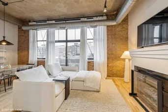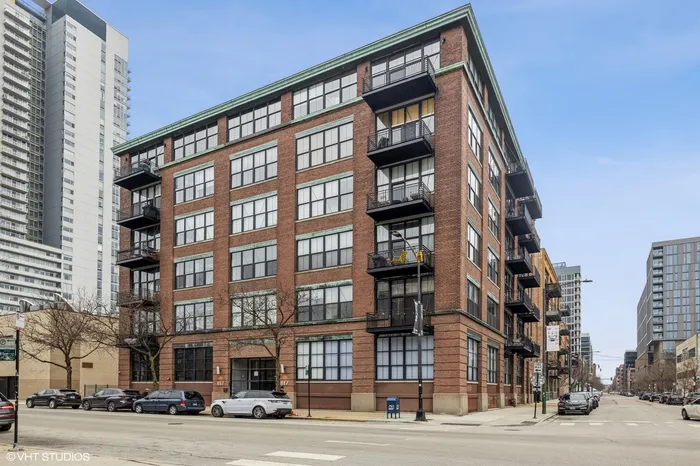 Rarely available 1-bedroom, 1-bath concrete loft in the highly sought-after Washington Blvd Lofts. This stunning home features soaring 14-foot concrete ceilings, exposed brick walls, and floor-to-ceiling west-facing windows that flood the space with natural light. The open, airy floor plan extends to a spacious private balcony. The kitchen offers stainless steel appliances, maple cabinetry, and granite countertops, seamlessly opening to the living and dining area. The living room is anchored by a gas fireplace with a decorative mantle and complemented by hardwood floors throughout. Thoughtful storage abounds with custom-built coat and bedroom closets. Additional highlights include newer in-unit stacked washer and dryer and a large, private, lockable storage cage located in a secure, climate-controlled storage room. A true loft living opportunity in a premier West Loop location close to the highway, Randolph Street restaurant row, Fulton Market, Mariano's, Whole Foods, Greektown, shopping, nightlife and more! 1 Deeded exterior parking space is included.